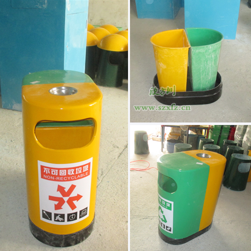 環(huán)保分類玻璃鋼垃圾桶 學(xué)校的首選深圳寶安沙井實驗學(xué)校,是欣方圳老顧客了。按照之前訂購的玻璃鋼垃圾桶樣板生產(chǎn),發(fā)實物照給工廠的廠長確認。A21玻璃鋼環(huán)保分類垃圾桶的規(guī)格為:680*400*850mm.這款垃圾桶來頭可不小哦,它是獲得了專利外觀設(shè)計的玻璃鋼垃圾桶。每個產(chǎn)品是經(jīng)過的嚴(yán)格生產(chǎn)程序制造出來,貼上產(chǎn)品合格證,符合企業(yè)高品質(zhì)標(biāo)準(zhǔn)。玻璃鋼垃圾桶一邊嫩綠,一邊中絡(luò)黃,底座黑色,外加一個煙灰缸巧妙的搭配,簡潔、美觀。桶蓋/桶身采用FRP玻璃鋼復(fù)合材料制造,具有防腐、防盜、防生銹、易清潔等特點,表面涂層采用高分子耐老化膠衣涂層,色澤明快、持久。