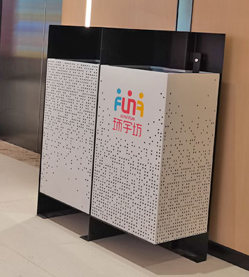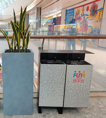 欣方圳商場不銹鋼烤漆景觀分類垃圾箱現場擺放圖