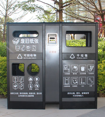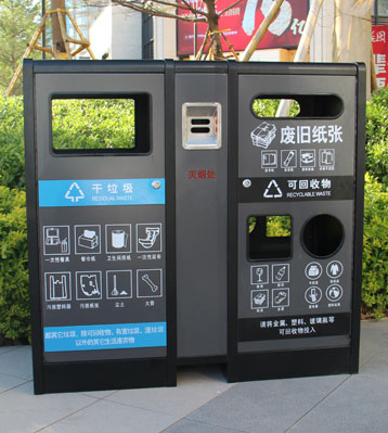 F139戶外鋼板四分類垃圾桶